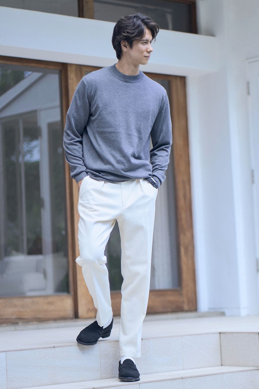 柔らかなライトグレーは清潔感と柔らかさのあるカラー。シンプルな着こなしにも自然に馴染み、軽やかで洗練された雰囲気に仕上がります。