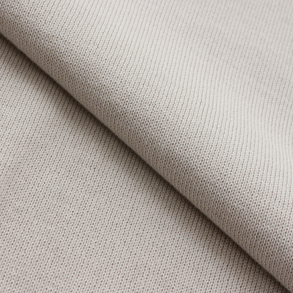 原料には、高級超長綿として名高いギザコットンを100%使用。シルクを思わせる上品な光沢とカシミヤのように滑らかでやさしい肌触りが特徴で、上質なコットンならではの美しい表面感を備えています。 さらりと軽い着心地で、清涼感のある快適な着用感を楽しめるニットです。