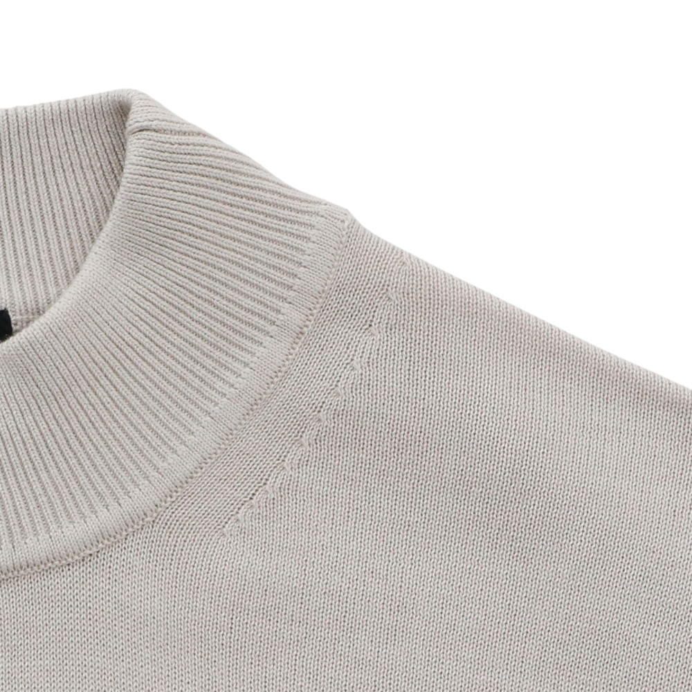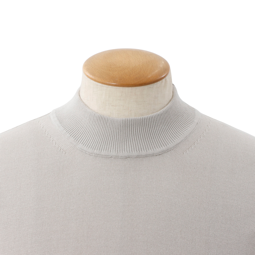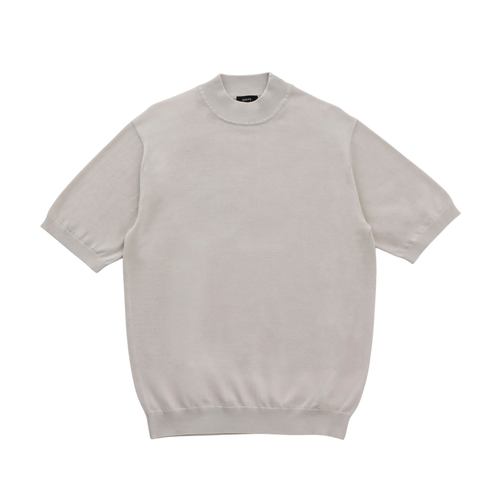 Mellow Knit モックネック スムースタッチ ギザコットン 半袖 ライトグレー