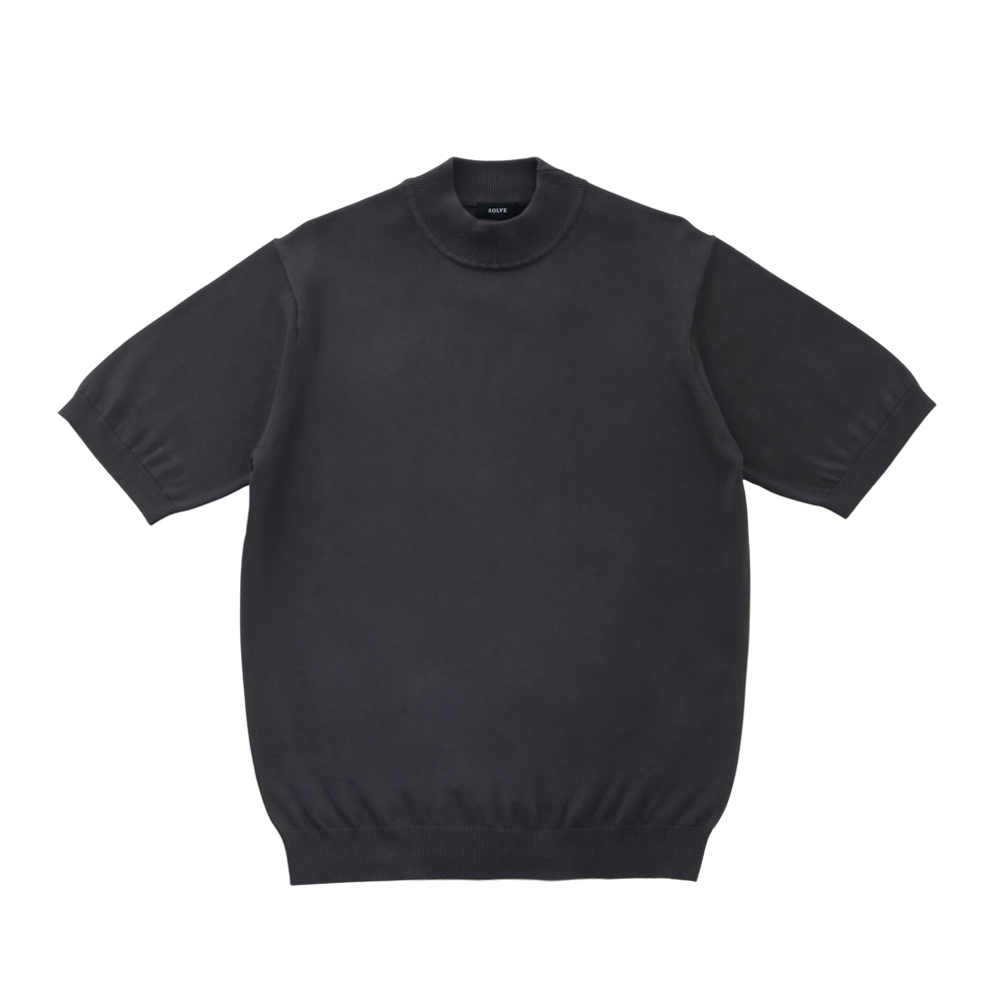 Mellow Knit モックネック スムースタッチ ギザコットン 半袖 チャコール