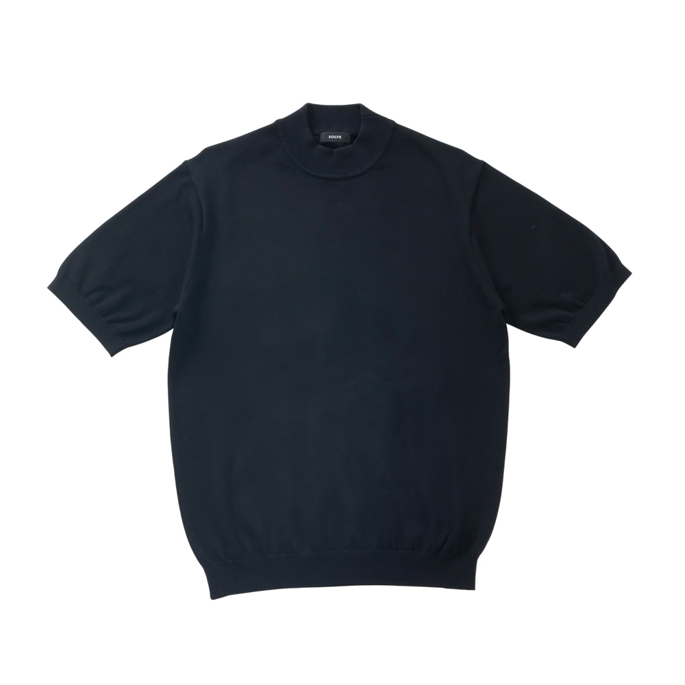 Mellow Knit モックネック スムースタッチ ギザコットン 半袖 ブラック