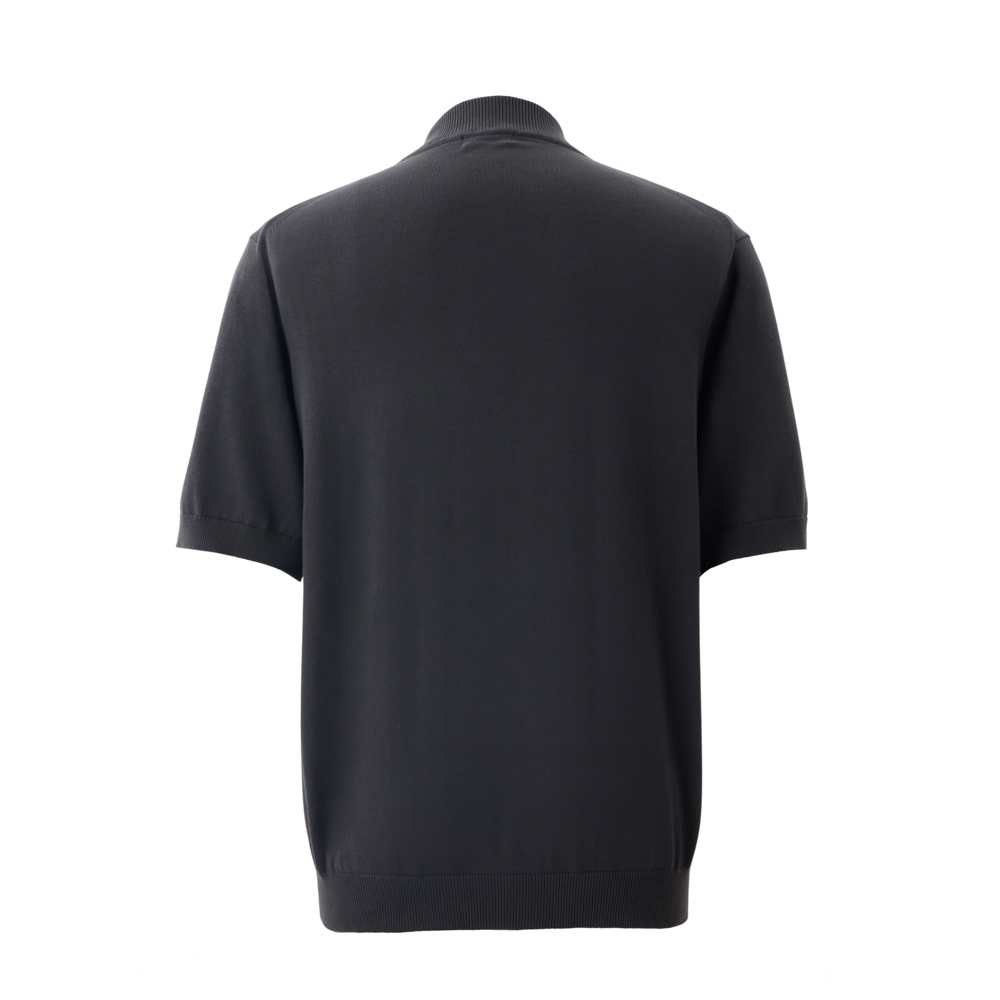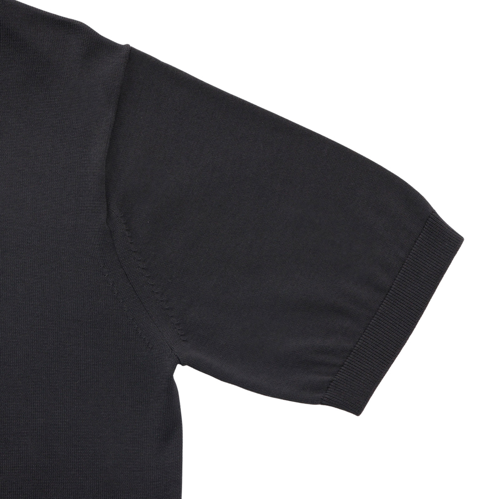 Mellow Knit モックネック スムースタッチ ギザコットン 半袖 ブラック