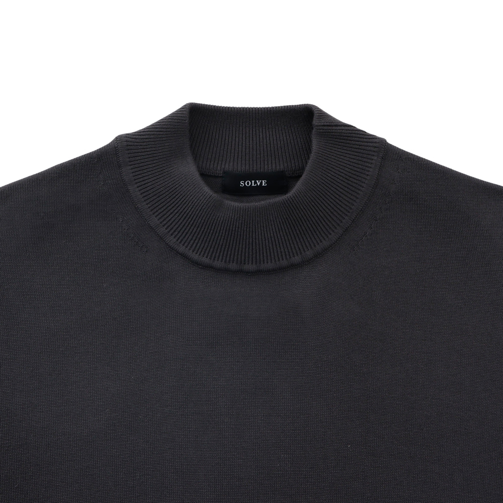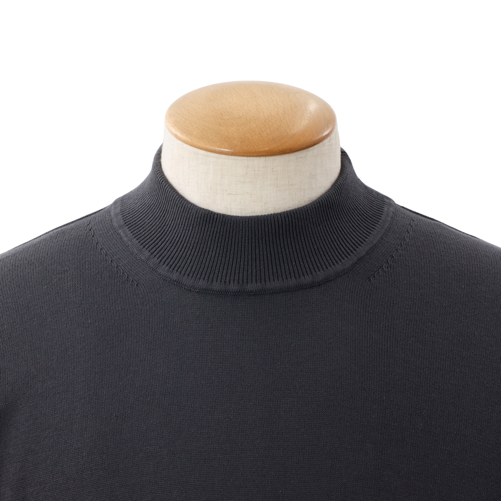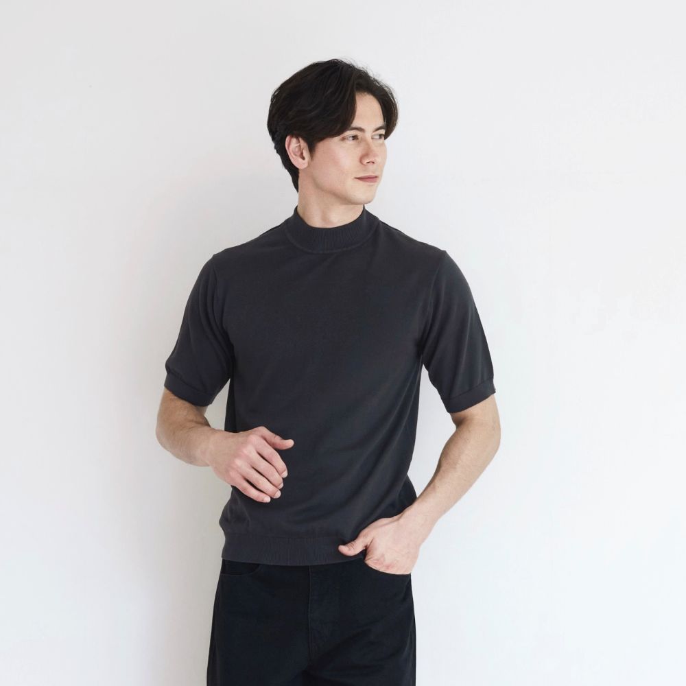 Mellow Knit モックネック スムースタッチ ギザコットン 半袖 チャコール