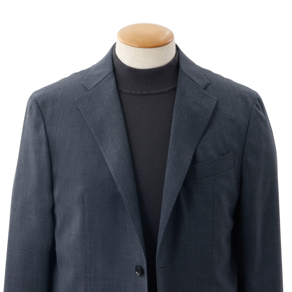 首元は、程よく高さを持たせたモックネック。首にやさしく沿うネックラインが上品な印象を与えつつも、締めつけ感はなく、軽やかな着心地に仕上げています。素材の良さとデザインのバランスにこだわった、快適さも魅力の一枚です。 1枚でもサマになるモックネックは、ジャケットのインナーとしても好相性。襟元を美しく整えつつ、ジャケットの衿が直接肌に触れるのを防ぐ実用性も備えています。