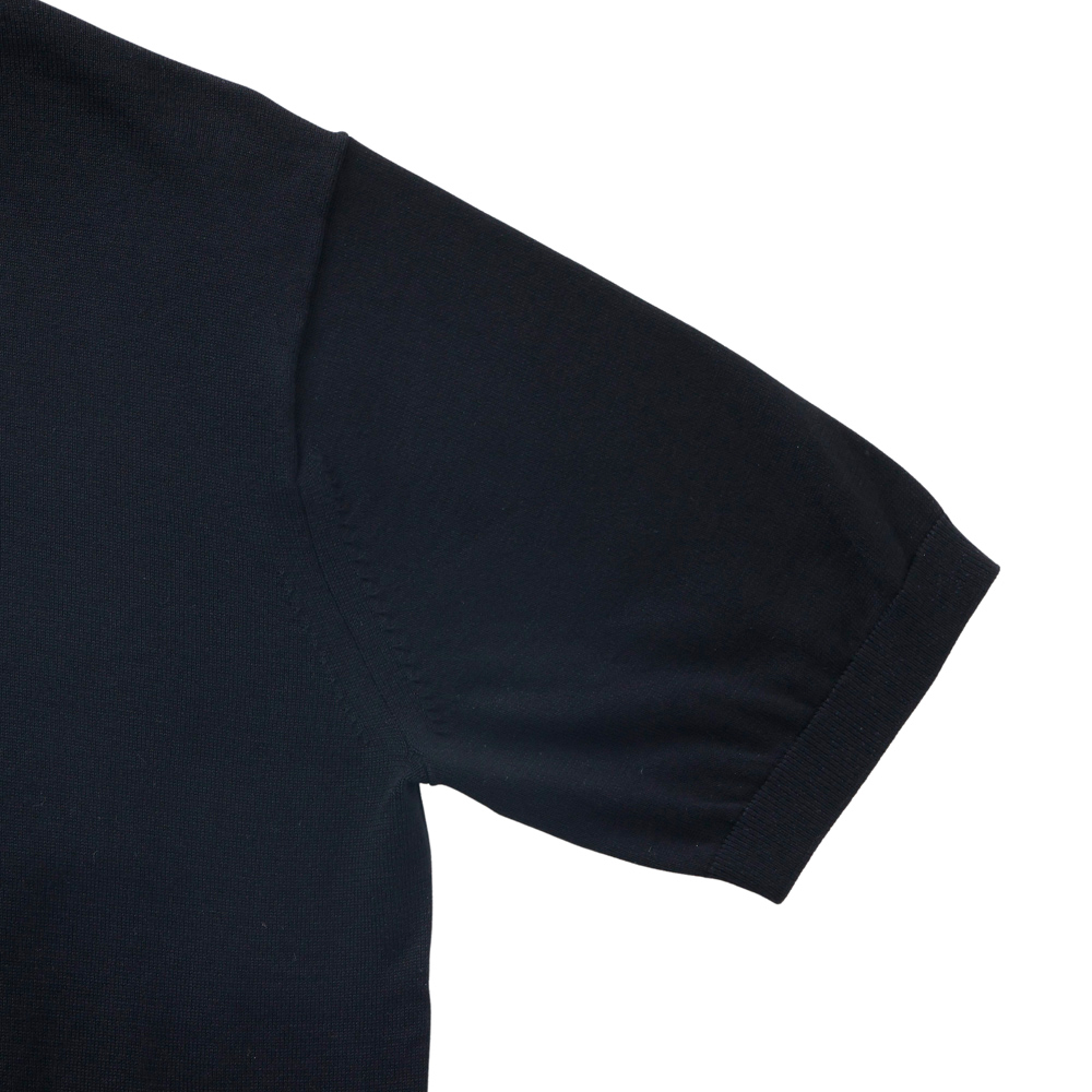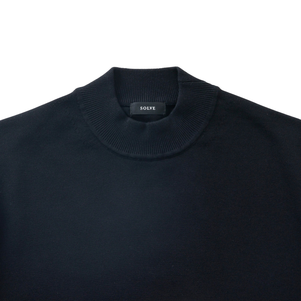 Mellow Knit モックネック スムースタッチ ギザコットン 半袖 ブラック