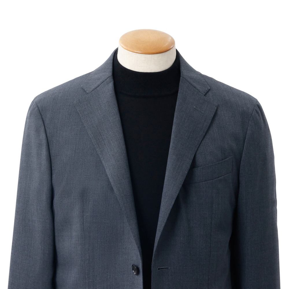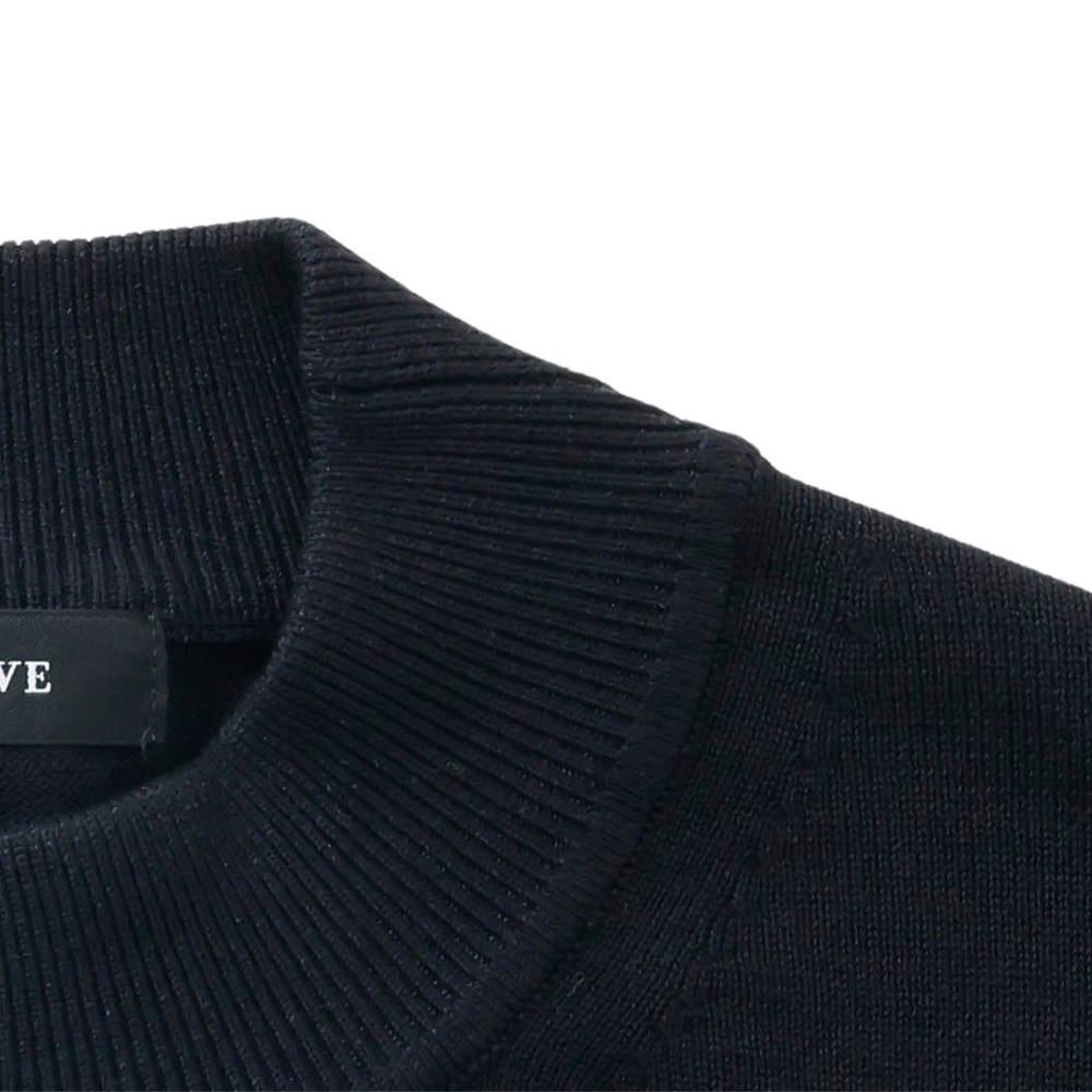 首元は、程よく高さを持たせたモックネック。首にやさしく沿うネックラインが上品な印象を与えつつも、締めつけ感はなく、軽やかな着心地に仕上げています。素材の良さとデザインのバランスにこだわった、快適さも魅力の一枚です。 1枚でもサマになるモックネックは、ジャケットのインナーとしても好相性。襟元を美しく整えつつ、ジャケットの衿が直接肌に触れるのを防ぐ実用性も備えています。