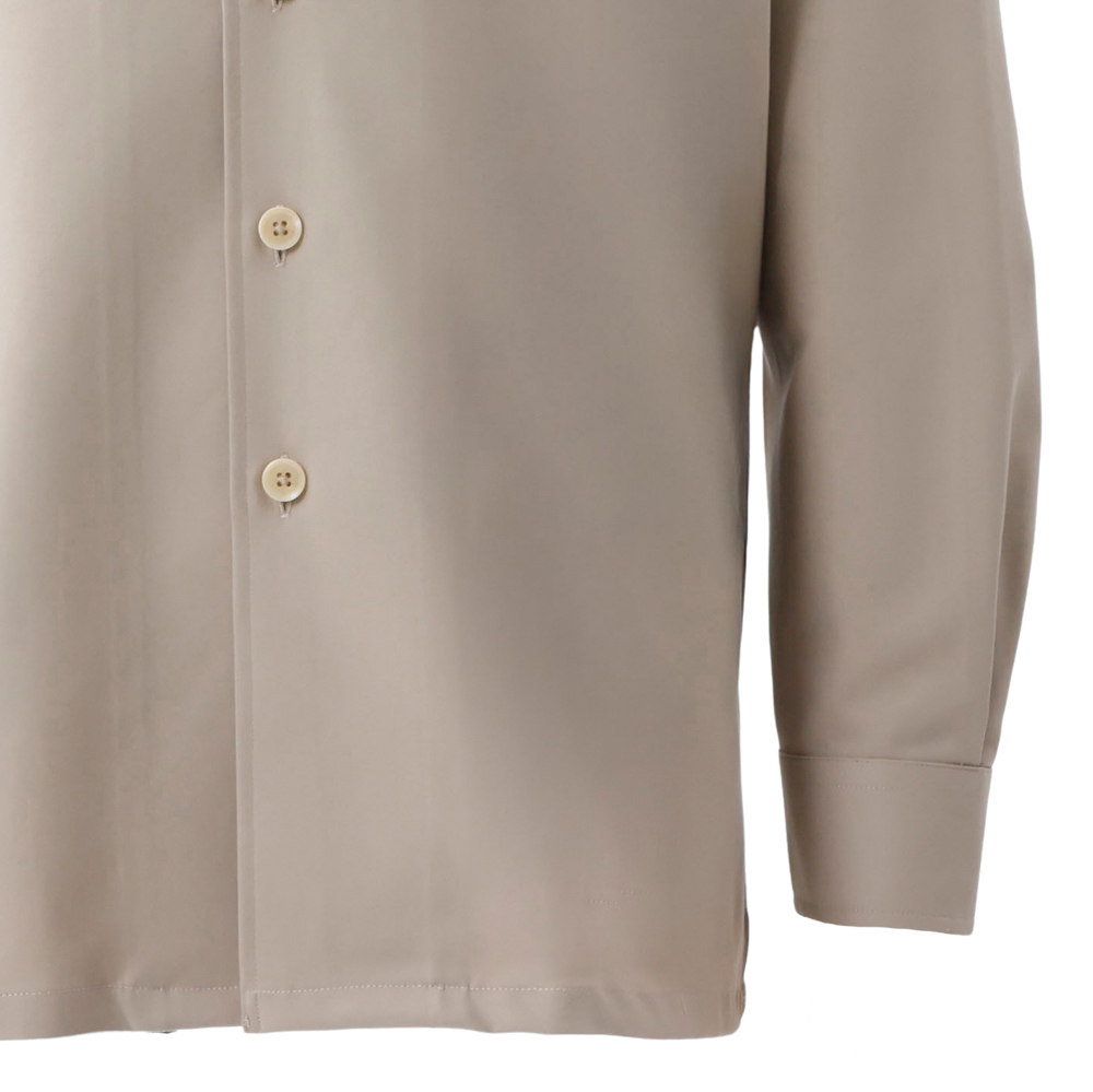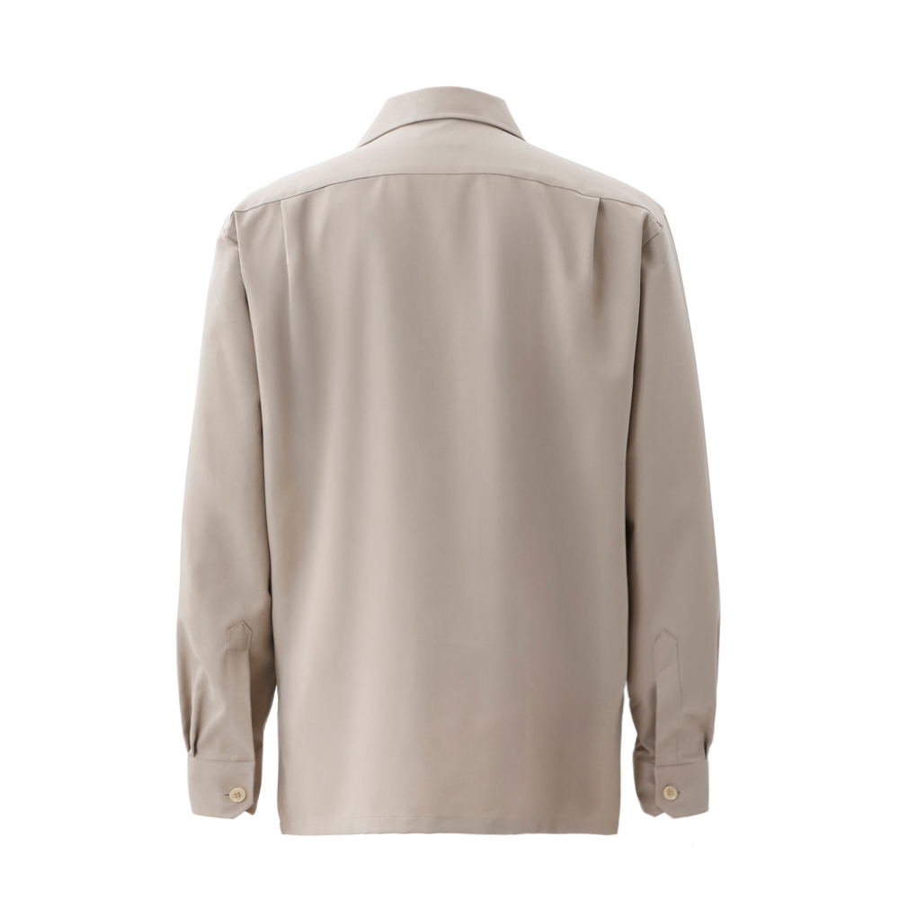 ゆったりとしたボックスシルエットが特徴の長袖オープンカラーシャツ。カジュアルスタイルにぴったりなダブルクロスを使用し、お好みのデザインやサイズにカスタマイズが可能です。