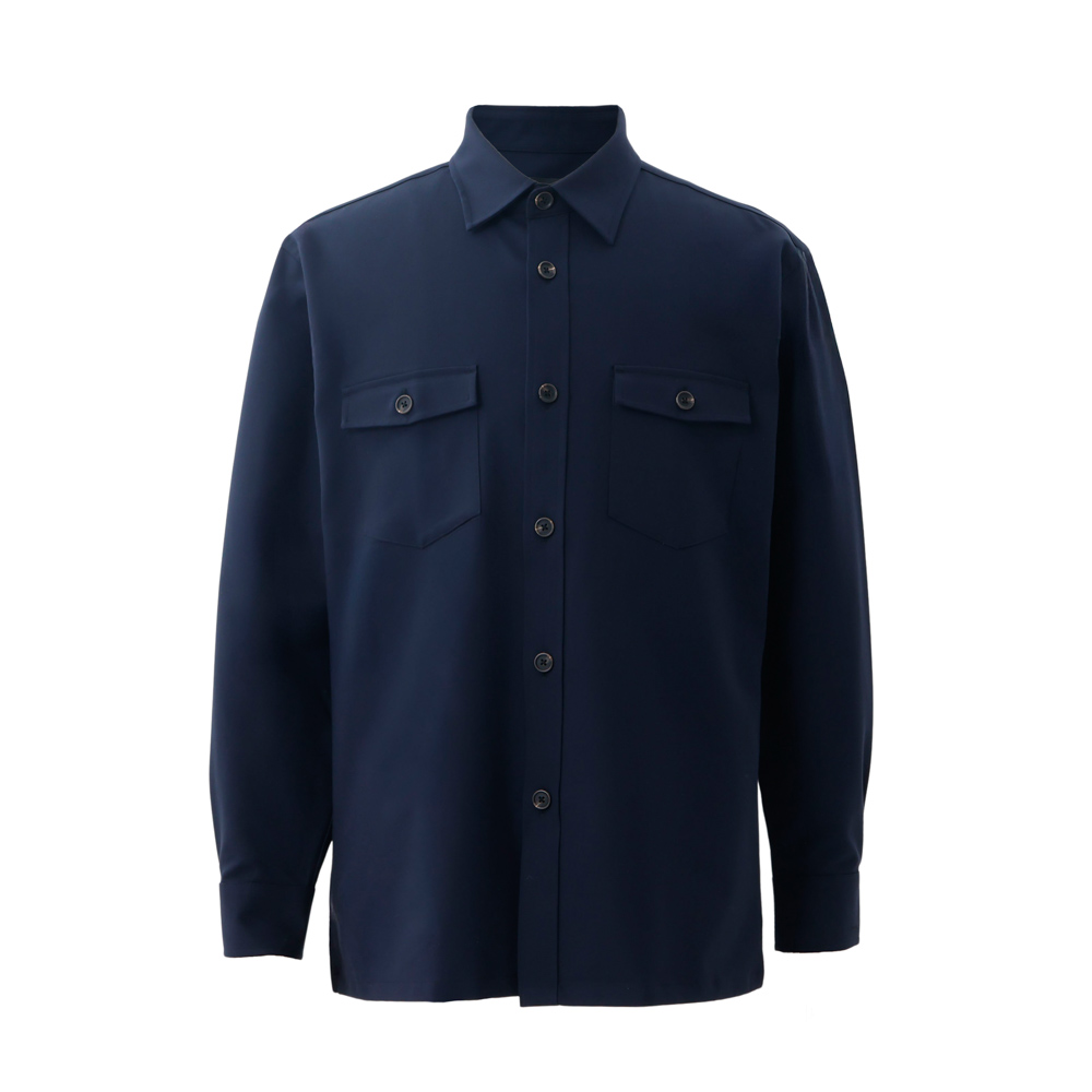 ゆったりとしたボックスシルエットが特徴の長袖シャツアウター。カジュアルスタイルにぴったりなダブルクロスを使用し、お好みのデザインやサイズにカスタマイズが可能です。