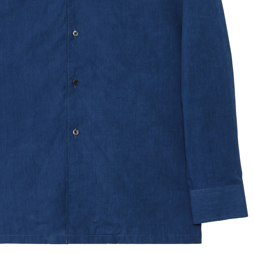 ゆったりとしたボックスシルエットで、カジュアルスタイルにぴったりなインディゴカラーの生地を使用した長袖オープンカラーシャツ。お好みのデザインやサイズにカスタマイズが可能です。