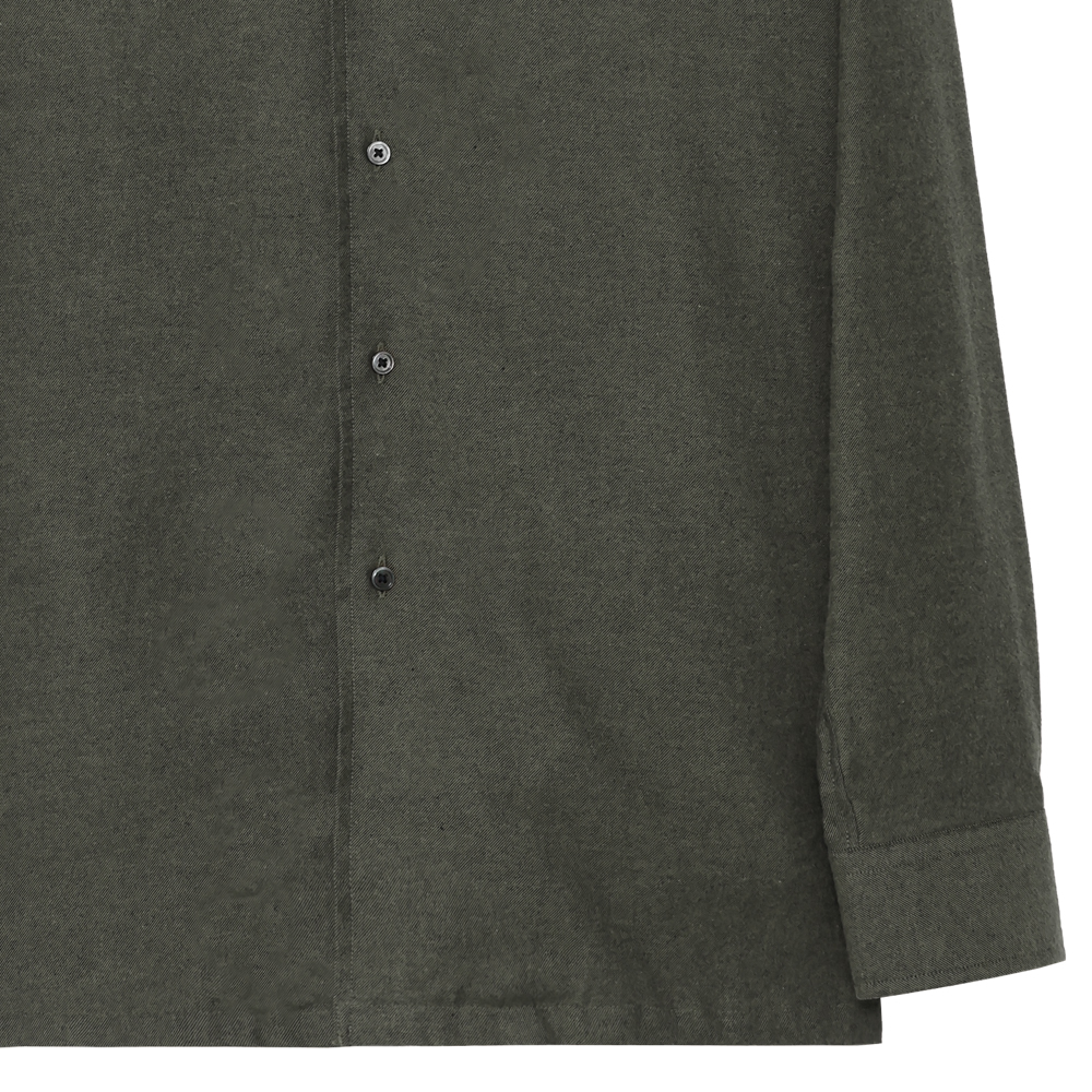 ゆったりとしたボックスシルエットで、カジュアルスタイルにぴったりなフランネル生地の長袖オープンカラーシャツ。お好みのデザインやサイズにカスタマイズが可能です。