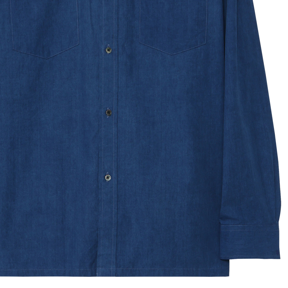 ゆったりとしたボックスシルエットで、カジュアルスタイルにぴったりなインディゴカラーの生地を使用した長袖シャツアウター。お好みのデザインやサイズにカスタマイズが可能です。