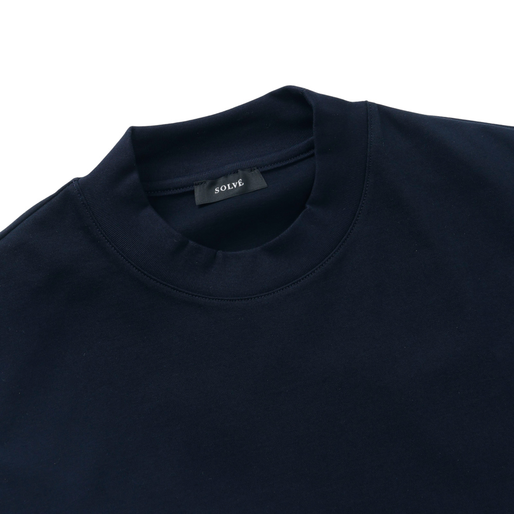 ジャケットスタイルに合わせやすく、ビジネスシーンでも品よく着こなせるモックネックTシャツ。少し短めの着丈設計で、裾まわりがダブつきにくく、すっきりと着用できます。テレワークやビジネスカジュアルにも重宝できる1着です。