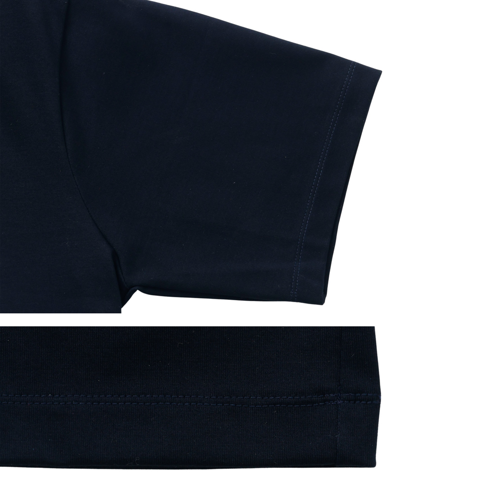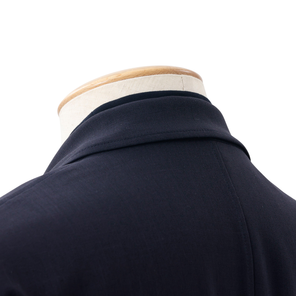 高めの襟巾が上品な印象の首元は、後ろ襟にかけてリブがより高くなるように設計しており、ジャケット着用時の襟元の汚れをカバーしてくれます。