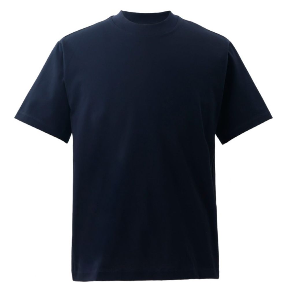 Mellow T-シャツ 変形モックネック 半袖 ALBINIコットン ネイビー