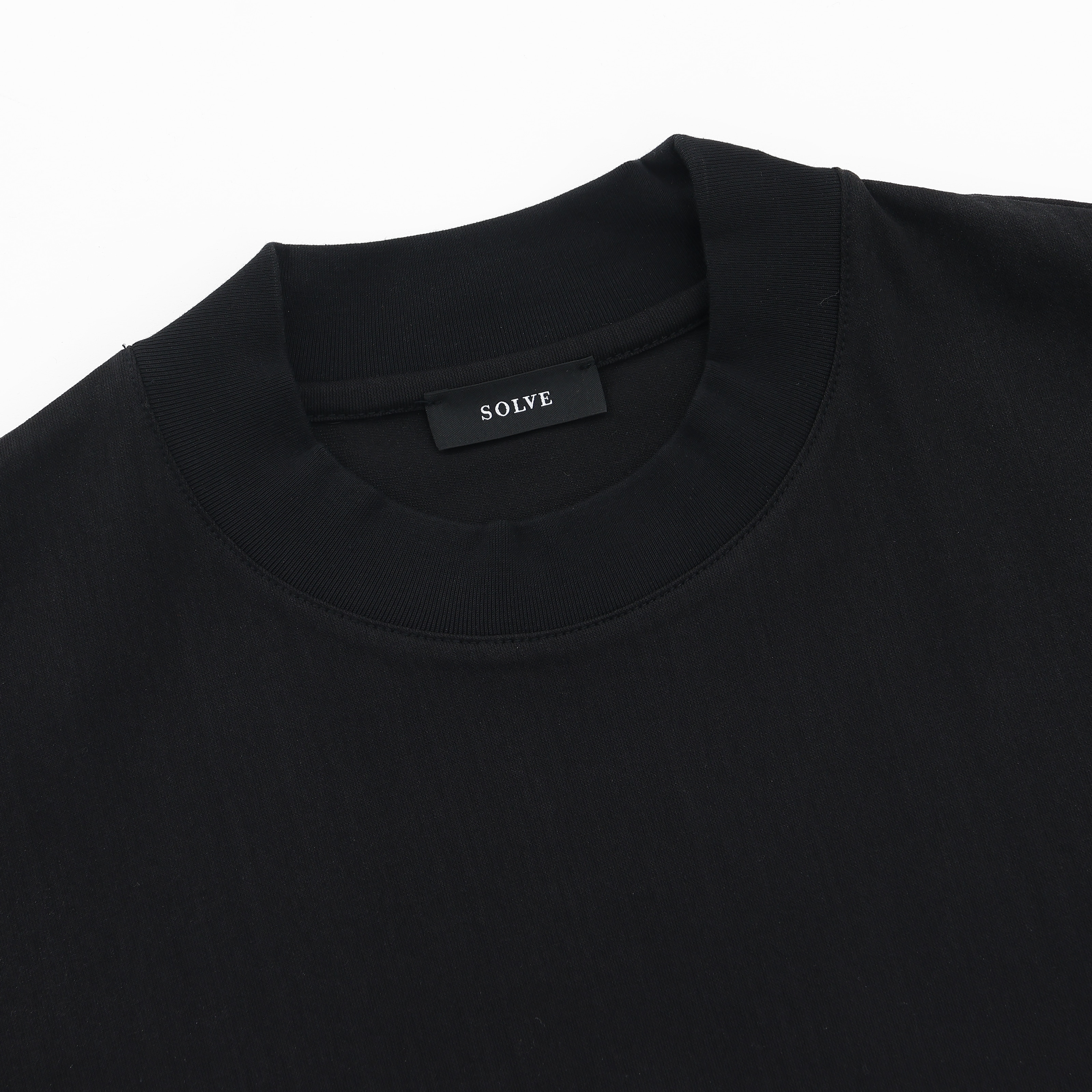 Mellow T-シャツ 変形モックネック ワイドシルエット ALBINIコットン 半袖 ブラック