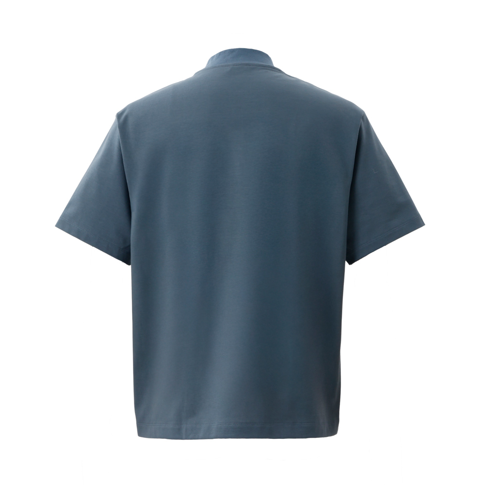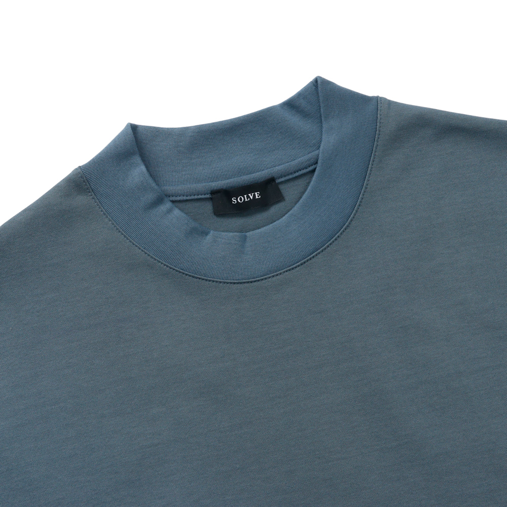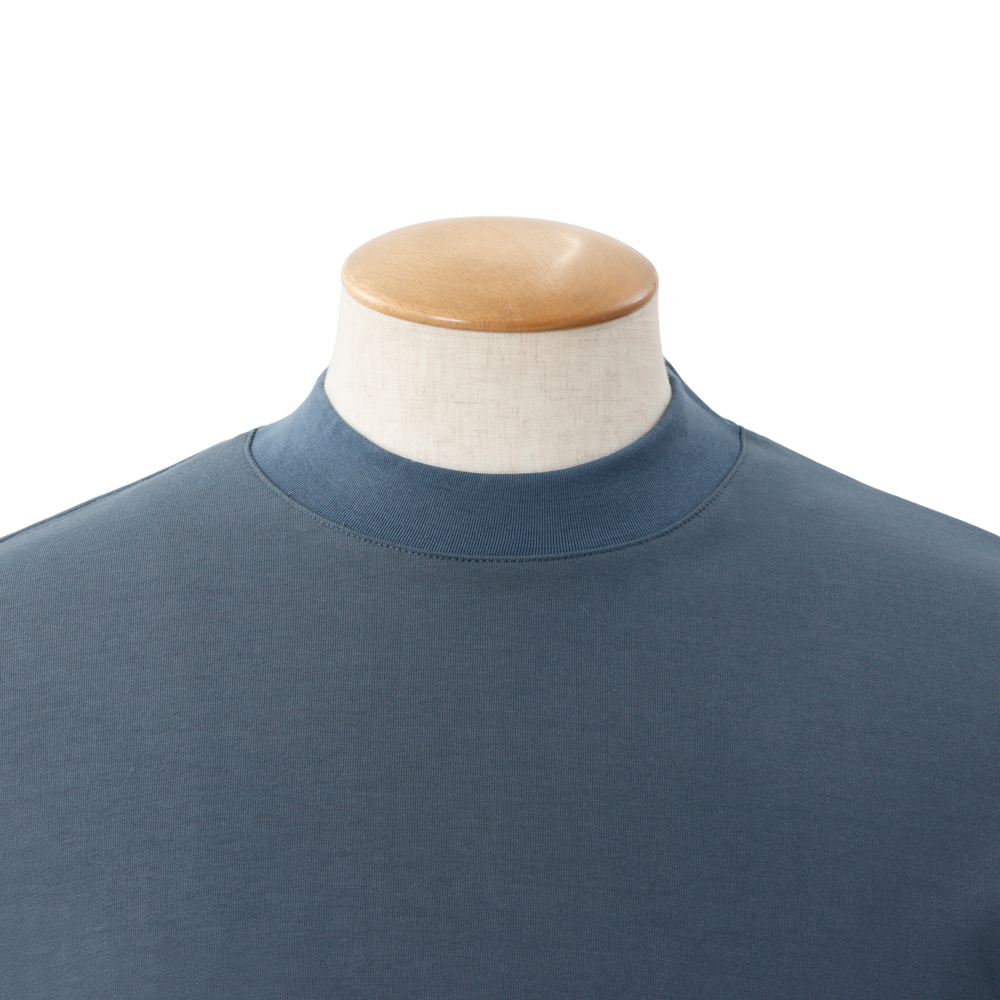 Mellow T-シャツ 変形モックネック ワイドシルエット ALBINIコットン 半袖 ブルーグレー