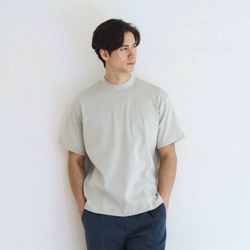 ジャケットスタイルに合わせやすい、ビジネスシーンできっちり見えるこだわりのモックネックTシャツ。少し短めの着丈設計で、裾まわりがダブつきにくく、すっきりと着用できます。テレワークやビジネスカジュアルにも重宝できる1着です。