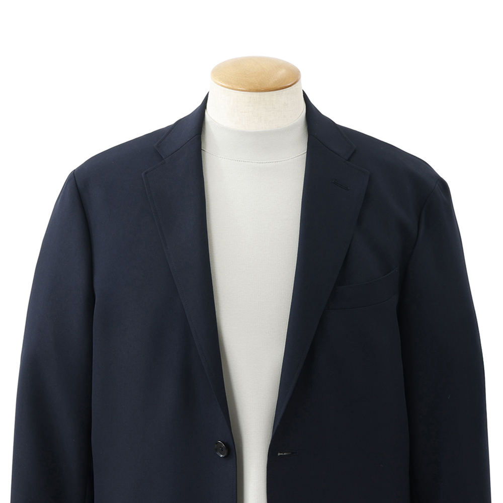 首元に程よい高さとフィット感を持たせたモックネックデザインが、さりげなくドレッシーな印象を演出します。一枚で着ても品良く決まり、もちろんジャケットとの相性も抜群。襟リブは首元に沿うよう設計しており、ジャケット着用時の見た目が美しいだけでなく、襟裏が汚れにくいのも嬉しいポイント。