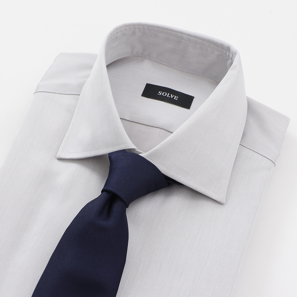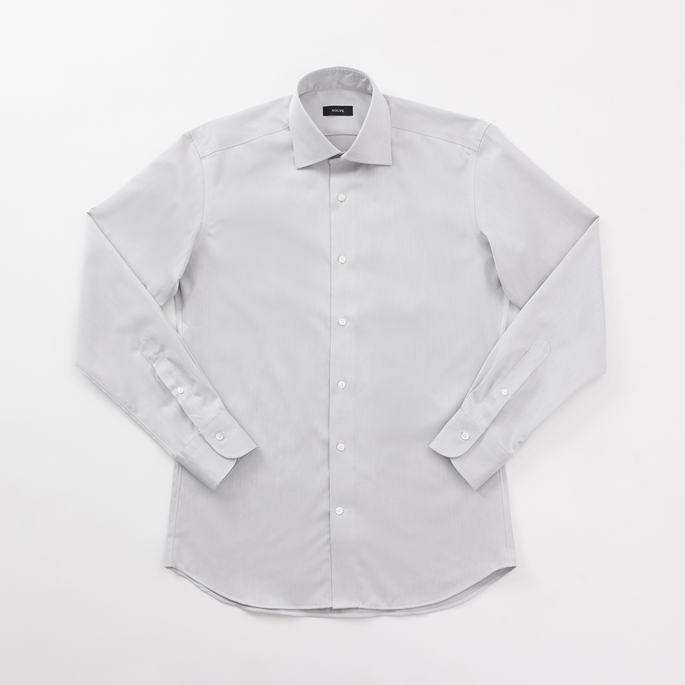 人気の「超ノンアイロン」の100番手双糸シリーズに、限定カラーが登場しました。 既存の「W-6148-1」の品質はそのままに、幅広いコーディネートに馴染む淡い色味のライトグレーを数量限定でご用意しました。 年間通して着用できる厚さで、ビジネスシーンにおすすめの一枚です。白シャツよりもニュアンスがあり、シックで大人っぽい絶妙なカラーリングを、ぜひこの機会にお試しください。 SOLVEオーダーシャツの中で最も人気のある「超ノンアイロン」シャツ。 100番手双糸を使った肌触りが良く肌に優しい綿100%の生地に、最高級の形態安定加工を施して、綿100%で有りながら殆どシワにならない生地に仕上げました。 洗って干すだけですぐに着用でき、着ている間もシワになりにくくきれいな外観を保ちます。 通常の綿100%のシャツと比べて縮みにくく毛羽たちにくいのも特徴です。 普段使いは勿論、出張シーンにも役立ちます。 ※形態安定性が強い生地なので後身頃は「ダーツ・タックなし」をおすすめします。 ※形態安定性が落ちてしまうためクリーニングではなくご自宅での洗濯を推奨します。 ※縫製時のサイズ誤差は各箇所に許容範囲を定めて品質管理をしております。 ※生地の特性上、洗濯によりご注文サイズから+1%~-3%の範囲で伸縮が生じます。 ※こちらの生地は数量限定でのご用意となります。在庫には限りがあり、売り切れ次第販売終了となります。 ※お直しの際に生地が販売終了していた場合は、別の生地でのご対応となります。あらかじめご了承ください。